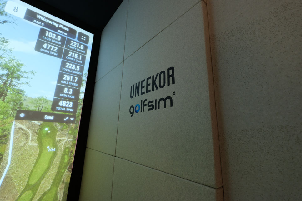 The chosen technology was Uneekor EYEXO. The overhead sensor allows for seamless left and right hand players in the space. Stickers can be used on the clubs to enhance metrics such as angle of attack and lie angle. The sensor has almost zero lag in the software and works perfectly for drivers, irons, wedges and putting.